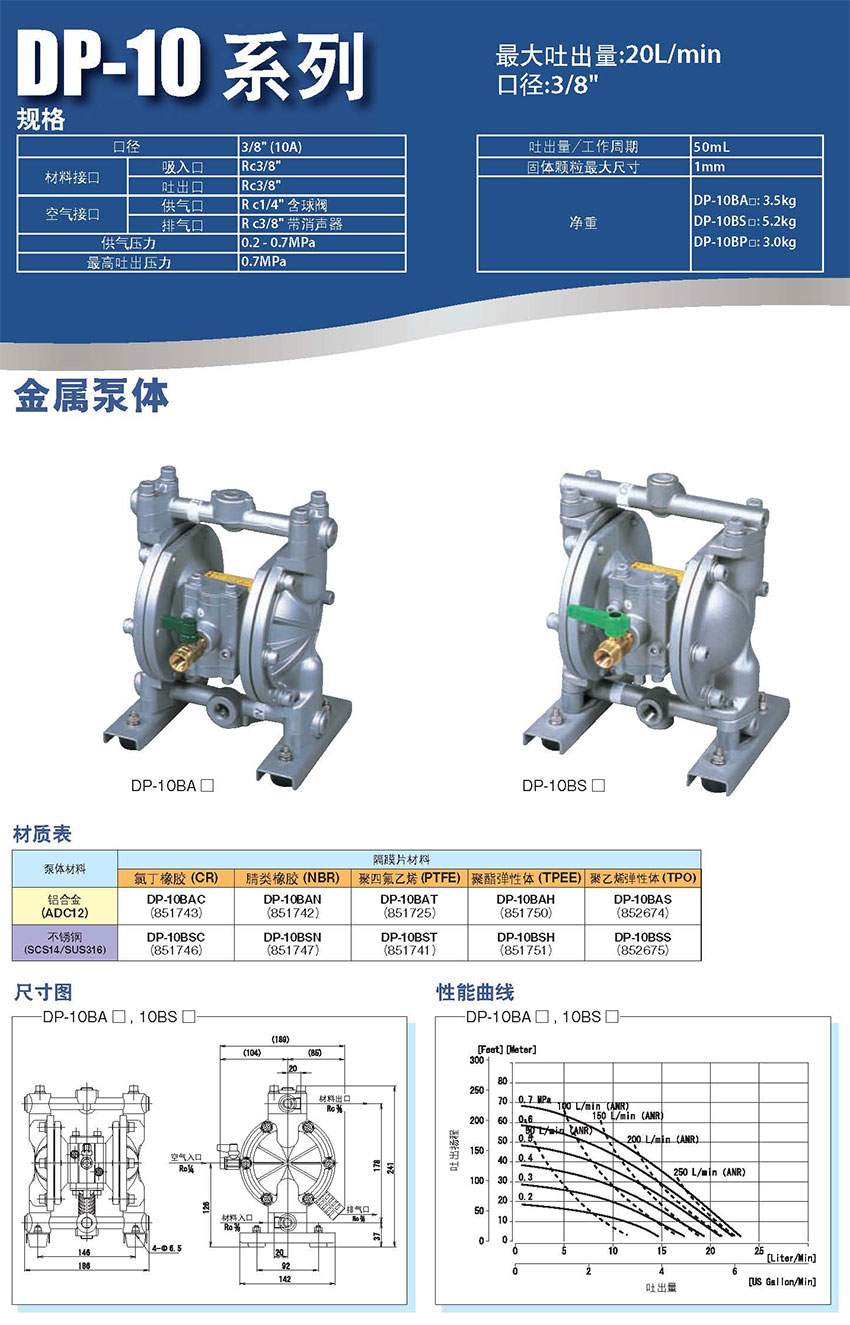 日本yamada山田气动隔膜泵有丰盛的种类可以供应给不一样的工业、不一样的专业进行合适的选择。泵的类型从可以放在掌上的超小类型5系列到大型的80系列共8种,接触液体有些的质料有6种,一同膜片的质料有7种,然后可以组成的底子类型就有150种以上,因此可以根据运用条件的不一样选择不一样的机型。