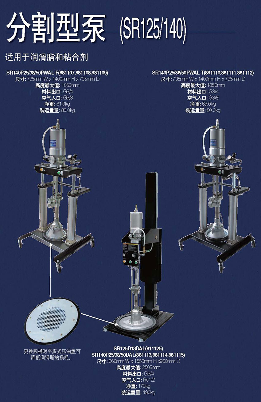 2,分割型泵:适用于具有风干性,不侵蚀泵材质的高粘度材料。如粘结剂,油灰,油墨,润滑脂等。